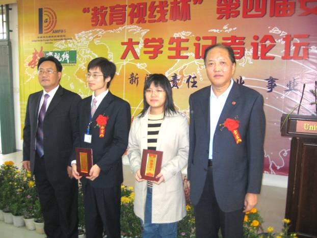 在2007年教育部思政司公布的全國高校校園文化建設(shè)優(yōu)秀成果評(píng)選中,“安徽省大學(xué)生記者論壇”獲得三等獎(jiǎng),充分展示了我省大學(xué)生的社會(huì)主人翁精神、自主創(chuàng)造性和思想層次性。