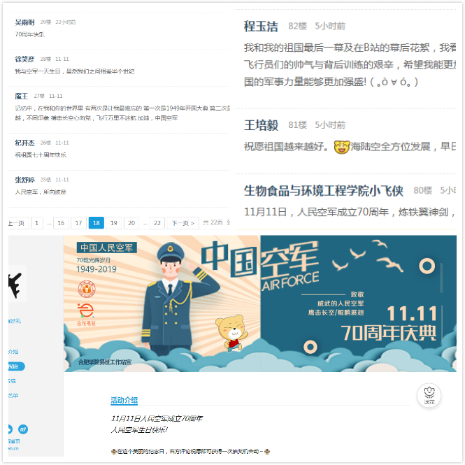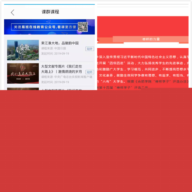 開設“打CALL新時代”新聞專欄,提高學生對中國新時代變化的關注,形成了合院特色的“易”品牌;開設小易講兩會專欄,引導青年線上學習五四精神;協同宣傳部開展“我和我的祖國”作品征集活動,激發學生的愛國主義情感,培養學生良好的愛國情操;開展慶祝人民空軍成立70周年活動,傳播新中國英雄歷史,宣揚英雄的“空軍精神”,引導學生在易班平臺評論祝愿,得到學生的熱情參與和認可。組織學生通過電腦或手機訪問“偉大歷程 輝煌成就 慶祝中華人民共和國成立70周年大型成就展”網上展館,身臨其境感受新中國成立70年來的偉大歷程和輝煌成就。協同團委進行“榜樣學子”活動宣傳,發揮榜樣的示范引領作用,有效地拓展大學生思想政治教育的途徑;開辟小易講熱點微社區,將校園熱點與社會主義核心價值觀有機融合,強化大學生思想引領。易班建設與發展成功申報我校社會主義核心價值觀教育優秀案例。
