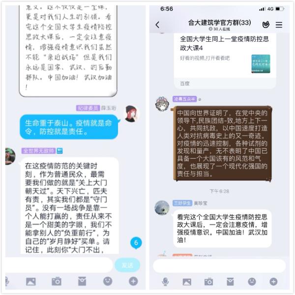 為了確保這堂特別的“思政大課”全面覆蓋、廣泛參與、取得實效,學校認真部署落實安排好在線學習的相關工作,黨委學工部牽頭組織實施,通過學校官網發布開課預告,利用易班·今日校園平臺通知每一位學生按時開展線上學習,鼓勵學生依托班級微信群、QQ群開展在線交流和討論,并動員同學們撰寫心得體會暢談感受心聲。