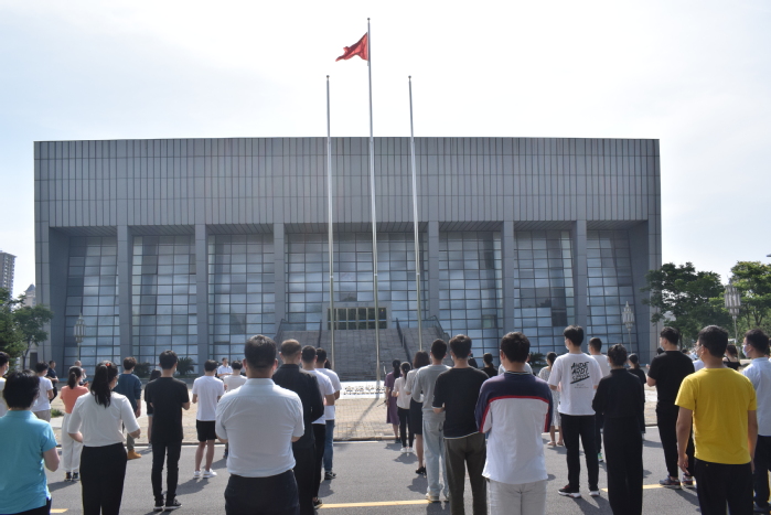 上午九點(diǎn),升旗儀式正式開始,王其東與國旗隊(duì)隊(duì)員共升國旗。在莊嚴(yán)的國歌聲中,五星紅旗冉冉升起,全體師生行注目禮唱國歌,表達(dá)內(nèi)心深沉的愛國之情。