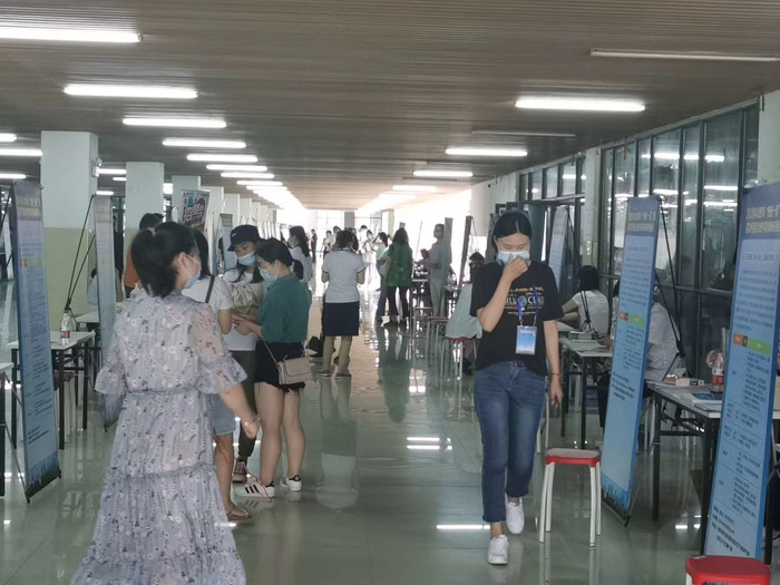 6月12日上午,由合肥市人社局與我校聯合主辦、合肥市公共就業人才服務管理中心和我校就業指導中心聯合承辦的“職進校園,樂業合肥”2020年“四進一促”暨招才引智合肥學院專場對接會在學校圖書館一樓順利舉辦。合肥市公共就業人才服務中心組織了在肥58家重點企業參加現場招聘對接活動。我校2020屆已返校未就業畢業生共計100余人參加了此次招聘會。學生處相關領導,各二級學院領導、輔導員、班主任老師參會,部分輔導員老師還為一些未返校未就業的畢業生現場投遞紙質簡歷。