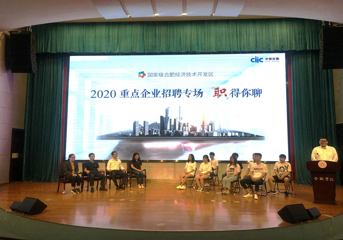 為全力以赴做好畢業生就業工作,助力學生完成在校就業最后一公里,6月23日下午,合肥經開區重點企業招聘專場 “職”得你聊活動在我校圖書館學術報告廳A廳順利舉行。來自合肥經開區的蔚來汽車、哈工大機器人(合肥)國際創新研究院、清華大學合肥公共安全研究院、辰安云服技術有限公司等優質企業人事代表和我校先進制造工程學院、人工智能與大數據學院等9位畢業生代表一起開展了“職”聊活動。經開區人力資源中心副主任鄭靜,我校學工部部長、學生處處長朱濤,副部長、副處長張應杰及就業指導中心主要負責人觀看了“職”聊活動。4家企業共計提供了30余個重要崗位,涉及電子信息、自動化、智能制造、新能源、行政等崗位類型,整體的崗位需求人才層次較高。