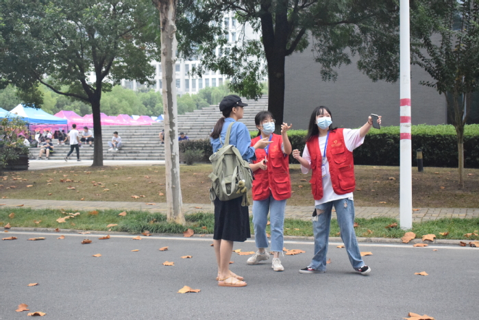 除了新生以外,迎新日的校園里還活躍著志愿者的身影,他們是合院最美的名片。“今年比較特殊,因為疫情防控的需要,家長不能陪同入校,所以我們承擔了大部分的行李搬運工作。雖然辛苦,但聽到新生們一聲聲真誠的感謝時,一切都值得了。”
