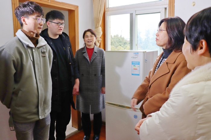 春暉漸近舊歲去,一元復(fù)始萬象新。在疫情防控常態(tài)化的背景下,寒假期間留校過年的學(xué)生數(shù)量較往年有所增加。為進(jìn)一步做好留校學(xué)生的關(guān)心關(guān)懷工作,2月1日下午,校長吳春梅、副校長陳秀帶隊赴學(xué)生公寓看望了20余名留校學(xué)生,提前向大家致以節(jié)日問候和新春祝福。