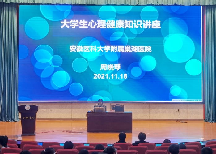 11月18日下午,我校在圖書館學術報告廳A廳舉辦了心理委員培訓暨心理健康教育專題講座。本次講座主講人為安徽醫科大學附屬巢湖醫院精神科主任周曉琴。我校黨委學生工作部副部長、學生處副處長張應杰,各二級心理工作站負責老師和2020級、2021級班級心理委員近200人一起聆聽了本次講座。講座由學生處心理健康教育與咨詢中心副主任謝琛主持。