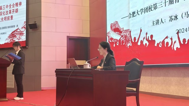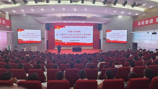 11月14日中午,合肥大學團校第三十期青年馬克思主義者培養工程培訓班、第五期菁英計劃培訓班于圖書館報告廳A舉行開班儀式。馬克思主義學院副院長蘇冰、校團委副書記李妍妍出席。
