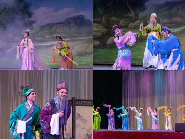 表演節(jié)目為黃梅戲經(jīng)典劇目《天仙配》,共六場,分為《鵲橋》《賣身》《路遇》《上工》《織絹》《滿工》和《分別》。舞臺上“七仙女”唱腔悠揚,身段優(yōu)美,演技精湛;“董永”表演真摯淳樸,生動傳神。劇情一波三折。兩個多小時的演出中,演員們通過舞蹈、身段和表情等手段,將角色的內(nèi)心世界展現(xiàn)得淋漓盡致,用婉轉(zhuǎn)悠揚的唱腔、生動傳神的表演將觀眾帶入一個充滿傳奇的戲曲世界,向觀眾們詮釋出了黃梅戲藝術的無窮魅力。整場演出內(nèi)容豐富,極富地方韻味特色,充分展現(xiàn)了高雅藝術的獨特魅力。