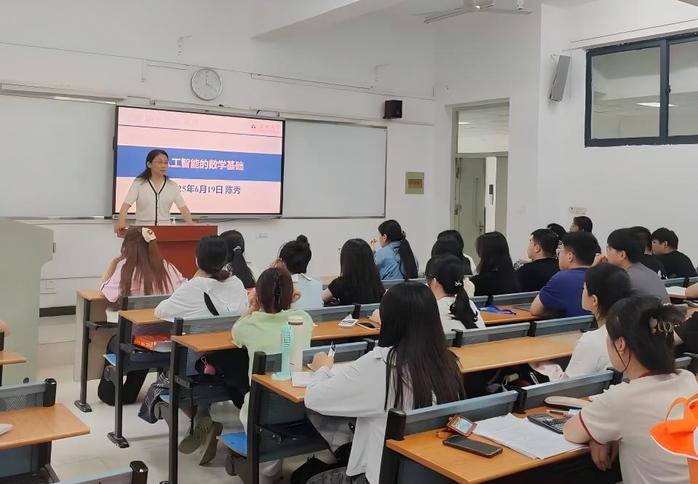 6月19日下午,副校長陳秀以“人工智能的數學基礎”為題,為23、24級研究生帶來“思政+專業”融合課。她以圖靈理論為切入點,梳理人工智能發展歷程與重大突破,展現我國政策布局與創新應用,以《哪吒之魔童鬧海》為例探析科技與文化融合的密碼。結合《教育強國建設規劃綱要》,她強調STEM教育與數學基礎的重要性,叮囑學生擁抱技術變革,重構學習范式。