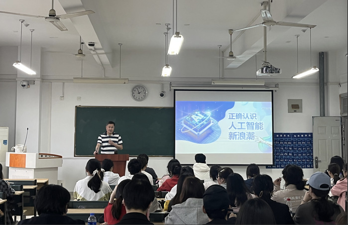 5月8日下午,副校長王曉峰為23級漢語言文學專業學生講授“正確認識人工智能新浪潮”。他從認清發展態勢、應用走深走實、筑牢發展優勢三方面,幫助學生了解人工智能趨勢,增強科技自立自強信心。他鼓勵學生培養數字技能,在堅守人文精神的同時提升競爭力,以前沿案例引發學生思想共鳴。