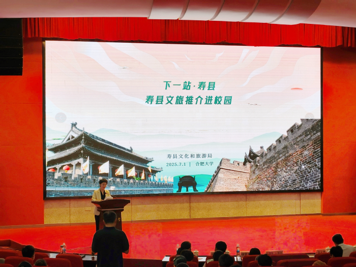 7月1日下午,“下一站·壽縣”文旅推介進校園活動在我校圖書館報告廳A廳舉行。黨委委員、副校長白義香,壽縣人民政府副縣長王素苗,壽縣縣委宣傳部、文化和旅游局等相關部門領導出席。活動吸引了數百名師生參與。