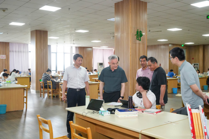 鄔平川一行首先來(lái)到圖書(shū)館自習(xí)區(qū)域和教學(xué)樓,與學(xué)生們親切交談,詳細(xì)詢問(wèn)學(xué)習(xí)情況和對(duì)環(huán)境保障的需求,關(guān)注考研學(xué)生的備考進(jìn)展與實(shí)際困難,為學(xué)生鼓勁加油。