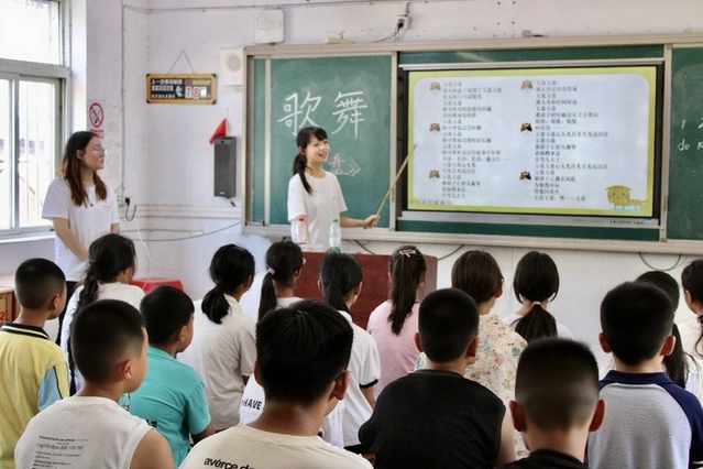 團隊針對農村留守兒童、新藍領家庭兒童開展公益支教,緊扣“語言筑基、文化浸潤”理念,打造了古詩文班、吟誦班、國學班、武術班、歌舞班,共招收63名兒童,累計50學時。活動期間,團隊聯合包河區團委、優秀校友孫榮錦發放共3500余元的體育用品和文具。武術班還特邀非遺陰陽雙合拳傳承人授課,這些舉措有效彌補了鄉村素質教育資源的不足,為孩子們送去快樂、點燃希望。