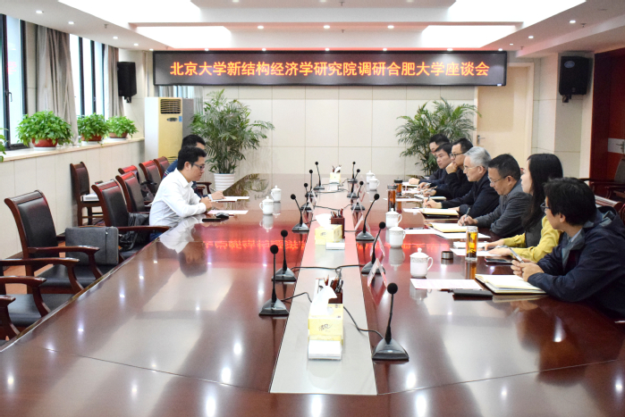 鄔平川對北京大學(xué)新結(jié)構(gòu)經(jīng)濟(jì)學(xué)研究院的來訪表示熱烈歡迎,他簡要介紹了合肥大學(xué)的發(fā)展歷史和辦學(xué)特色,以及學(xué)校經(jīng)濟(jì)管理專業(yè)發(fā)展動(dòng)態(tài)。