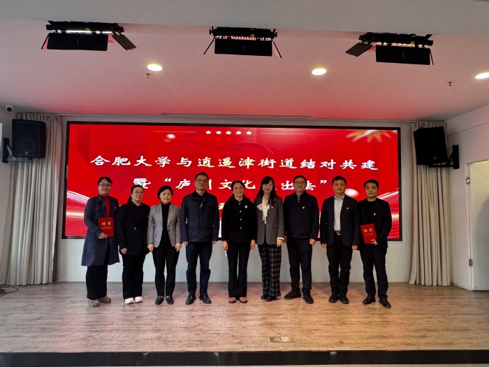 11月12日,合肥大學與逍遙津街道結對共建暨“廬陽文化走出去”啟動儀式在廬陽區逍遙津街道舉辦。副校長陳秀與合肥市外事辦公室副主任劉洋、廬陽區委書記高強、逍遙津街道黨工委書記丁華斌出席活動,40余名師生代表參加活動,儀式由外國語學院副院長(主持工作)曹昊主持。