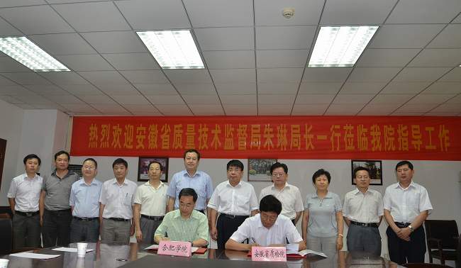 6月21日下午,安徽省質量技術監督局黨組書記、局長朱琳,副局長高宗宏等一行蒞臨我院指導工作。院長蔡敬民、副院長陳嘯、院紀委書記洪家友在南艷湖校區厚德大廈接待了來賓。雙方就開展全面合作舉行了建設性座談。