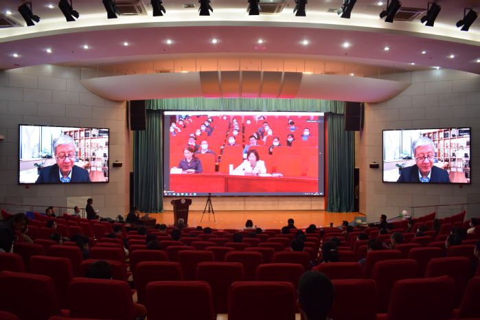 校長吳春梅、副校長陳秀及各學(xué)院骨干教師共150余人聆聽了報(bào)告,吳春梅主持報(bào)告會(huì)。會(huì)議以智能交互遠(yuǎn)程視頻的形式進(jìn)行,這是我校首次采用現(xiàn)代信息化手段召開的交互式線上報(bào)告會(huì)。