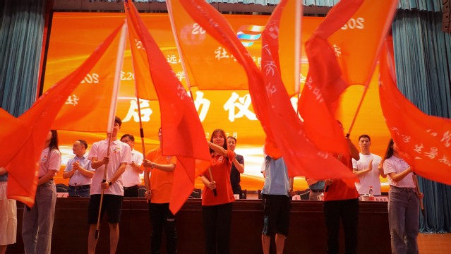 啟動儀式上,校團委副書記王玉介紹了我校今年暑期“三下鄉”社會實踐工作的準備情況;團隊學生代表先進制造工程學院王宇同學、帶隊指導老師代表語言文化與傳媒學院劉政老師和馬克思主義學院黃瑩瑩老師分別積極發言表態;與會領導為“三下鄉”實踐隊代表授旗。