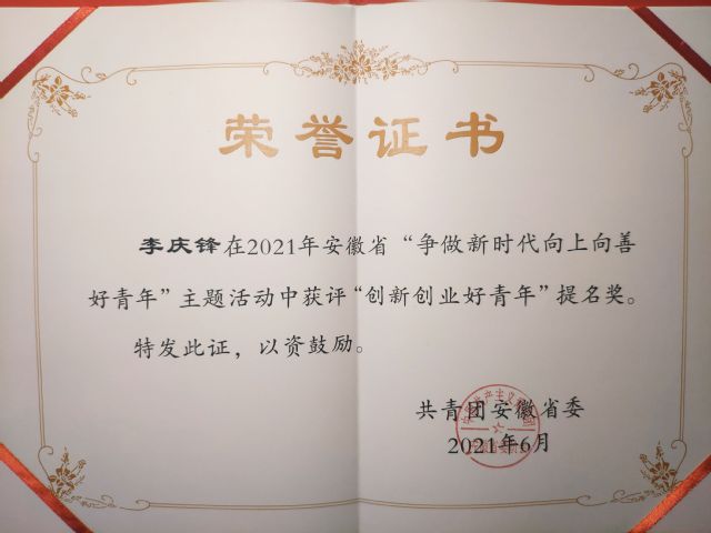 近日,共青團(tuán)安徽省委員會(huì)公布了2021年安徽省“爭(zhēng)做新時(shí)代向上向善好青年”評(píng)選結(jié)果,我校經(jīng)濟(jì)與管理學(xué)院2018級(jí)物流管理專業(yè)李慶鋒同學(xué)榮獲“創(chuàng)新創(chuàng)業(yè)好青年”提名獎(jiǎng)。