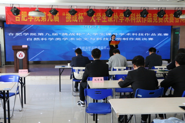 4月9日下午,由共青團合肥學院委員會主辦、合肥學院青年科技發展中心承辦的第九屆“挑戰杯”大學生自然科學類學術論文和科技發明制作類競賽理科組決賽在大學生活動室一圓滿結束。此次比賽邀請了5F創業園總經理張大鳴老師、安徽格潤科技控股有限公司的董事長夏振華老師、安徽建筑大學的副教授金杰老師和合肥學院大學生創新創業教育中心副主任孫虹老師作為評委出席。