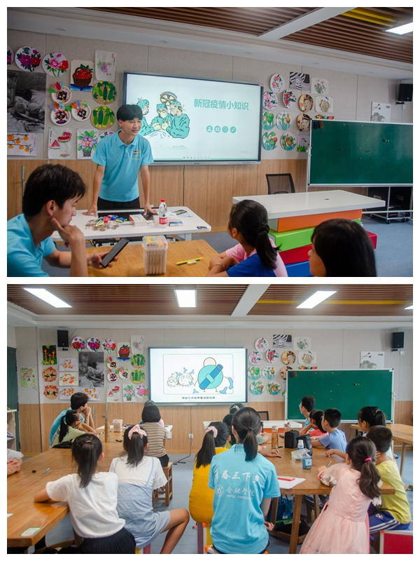7月20日,實踐團(tuán)隊前往嚴(yán)店鄉(xiāng)中心學(xué)校進(jìn)行防疫宣講。成員們向小朋友們講解新冠肺炎的危害和防護(hù)知識,并播放鐘南山院士的紀(jì)錄片,讓小朋友們深入了解抗“疫”故事。