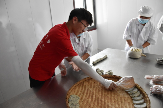 在前往柿樹崗鄉(xiāng)之前,調(diào)研團(tuán)隊通過網(wǎng)上查閱資料,了解到當(dāng)?shù)負(fù)碛卸囗検屑壓涂h級非遺項目,政府和居民對非遺保護(hù)與傳承高度重視,政府通過政策進(jìn)行扶持,將非遺打造成當(dāng)?shù)匚幕划?dāng)?shù)鼐用裨诶^承非遺文化同時,積極尋找合適的繼承者傳授技藝,確保非遺文化薪火相傳。在探尋非遺過程中,調(diào)研團(tuán)隊有幸參與到非遺食品蒿子粑粑的制作過程中,品嘗美味的同時,也親身感受蘊藏在其中的文化基因。調(diào)研團(tuán)隊還近距離觀看了當(dāng)?shù)胤沁z項目“門歌”和“碟子舞”,了解其創(chuàng)作理念及傳承情況,深入感受當(dāng)?shù)剜l(xiāng)土人情。