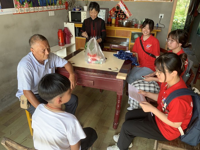 在本次三下鄉(xiāng)活動中,青年小隊的志愿者們用自己的青春力量服務當?shù)?,不僅為當?shù)氐男∨笥褌儌魇谥R,還給留守兒童們送去了溫暖。18日下午,青年小隊前往四位留守兒童家中探訪,對他們的生活學習等方方面面進行了關(guān)切問候。