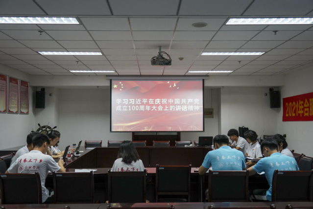 實踐隊員們專題學習了《習近平總書記在慶祝建黨100周年大會上重大講話》精神、習近平關于青年工作的重要論述和《關于新時代加強和改進思想政治工作的意見》等,同時采用研學+討論的模式,開展了“黨史我來學”學習心得分享會,將學習中產生的感悟體驗進行交流。團隊成員王宇在分享時說到“百年大黨,風雨滄桑。百年前,一群人架著一艘紅船,穿過激流險灘、跨過驚濤駭浪,成就了中華今日之巍巍巨輪……”。隊員們還重溫了紅色電影《建黨偉業》。一系列的學習教育使得同學們更加深刻地領悟到革命前輩的奮斗精神,更加堅定了“強國有我”的報國信念。