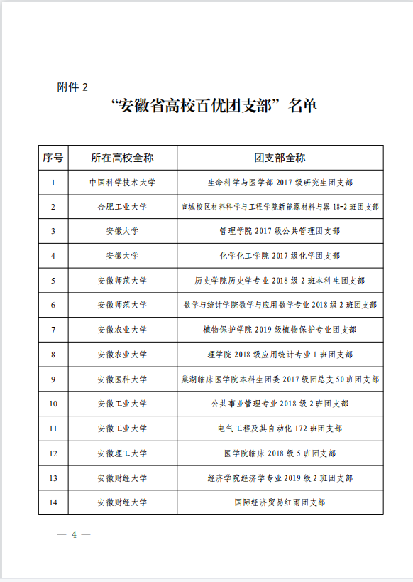 近日,共青團(tuán)安徽省委公布了2020—2021學(xué)年安徽省“高校活力團(tuán)支部”遴選及風(fēng)采展示活動(dòng)結(jié)果的最終名單。我校先進(jìn)制造工程學(xué)院18級(jí)通信工程專業(yè)1班團(tuán)支部、教育學(xué)院19級(jí)小學(xué)教育2班團(tuán)支部榮獲“安徽省高校百優(yōu)團(tuán)支部”榮譽(yù)稱號(hào)。