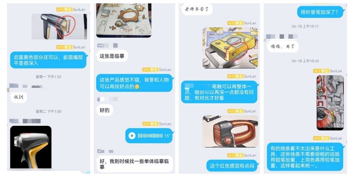 空間的阻隔讓孫老師難以全面掌握學(xué)生的學(xué)習(xí)狀態(tài),更難以精準(zhǔn)指導(dǎo)每位學(xué)生的手繪作業(yè),為此,孫老師摸索出了“分組連線(xiàn)”的方法,每組四位同學(xué),同時(shí)將手繪狀態(tài)實(shí)時(shí)反映在師生的屏幕上,老師一一點(diǎn)評(píng)指導(dǎo),各組隨機(jī)輪換連線(xiàn),這樣老師就能及時(shí)發(fā)現(xiàn)每位學(xué)生的問(wèn)題并加以輔導(dǎo)。這種新穎的線(xiàn)上教學(xué)方式對(duì)于孫嵐來(lái)說(shuō)已經(jīng)不是第一次嘗試了。“在2020年的特殊時(shí)期,我就已經(jīng)在嘗試使用這種線(xiàn)上教學(xué)方式,當(dāng)時(shí)同學(xué)們的反響較好,所以在這次線(xiàn)上教學(xué)中,我沿用了這種方式。”孫老師說(shuō)道。因?yàn)檎n程少、任務(wù)重,為監(jiān)督學(xué)生的學(xué)習(xí)狀態(tài),提高學(xué)生課內(nèi)外的學(xué)習(xí)效率,孫老師還建立了課后學(xué)習(xí)小組,通過(guò)線(xiàn)上軟件對(duì)學(xué)生進(jìn)行詳細(xì)指導(dǎo),結(jié)合課后練習(xí)幫助他們及時(shí)鞏固課堂知識(shí)。這一套“組合拳”下來(lái),不僅提高了學(xué)生在線(xiàn)上課堂中的積極性,也保證了線(xiàn)上教學(xué)的質(zhì)量。