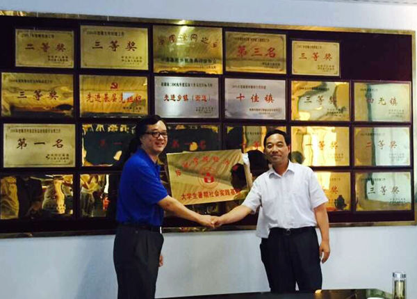 丁明與石頭鎮鎮委領導為大學生暑期社會實踐基地揭牌