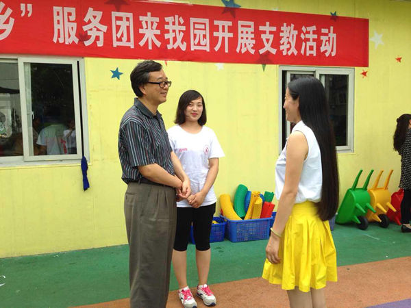 在徽州區黃發幼兒園,丁明與正在為幼兒園做裝飾的教育系志愿者進行了親切交談,與園長及志愿者代表舉行了座談會。在廬江縣石頭鎮,丁明為小朋友們贈送了書本和文具用品,并詳細解了經濟系實踐活動的組織開展和隊員們的飲食起居情況,與志愿者和當地工作的我校畢業生進行了深入交流。他希望大家能全面了解當地的經濟、社會、文化,爭取建立志愿者長效服務機制。隨后,丁明與石頭鎮鎮委領導共同為合肥學院大學生實踐基地揭牌,并考察了當地重點企業萬磁公司。在肥西縣銘傳鄉,他看望慰問了學生社團聯合會的暑期社會實踐活動團隊,聽取了活動開展情況匯報。他希望同學們勇于克服困難,砥礪品格、磨煉意志,把所學專業知識應用于實踐,相互團結,注意安全,圓滿完成實踐任務。在包河區大圩鎮,丁明一行參觀了機械工程系支教學生開展的活動,仔細詢問了活動組織、食宿安排等情況,并就創新創業及志愿者服務工作的深入合作與大圩鎮相關部門進行了交流。