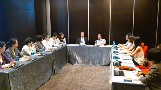 8月4日,校紀委書記洪家友在旅游系主任劉力、黨總支副書記黃雄英以及認知實習指導老師徐麗霞、姜陽的陪同下,前往合肥萬達威斯汀酒店檢查旅游系2013級酒店管理專業認知實習工作,并與認知實習學生舉行座談會,合肥萬達威斯汀酒店總經理約翰·貝雷斯福德(John Beresford)、人力資源總監梁娜以及相關負責人參加了座談會。