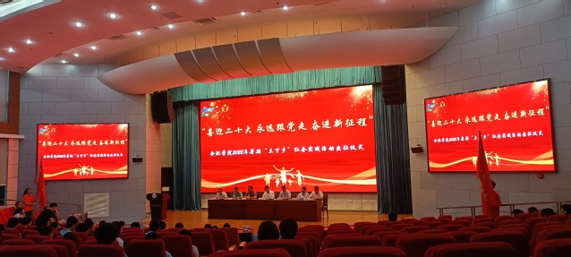 6月23日下午,我校在圖書館報告廳A廳舉行2022年暑期“三下鄉”社會實踐出征儀式。宣傳部、教務處、學生處、研究生處、馬克思主義學院、校團委等部門領導及校級重點團隊指導老師和團隊成員代表參加了出征儀式。儀式由校團委書記王玉主持,校黨委副書記劉建中出席并講話。