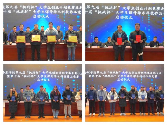 王玉代表合肥學院第九屆“挑戰杯”大學生創業計劃競賽組織委會簡要匯報大賽組織工作。王曉峰宣讀了《關于表彰合肥學院第九屆“挑戰杯”大學生創業計劃競賽獲獎作品、優秀組織獎和優秀指導老師的決定》。與會領導們先后為優秀組織和優秀項目代表頒獎。朱濤宣讀了《關于舉辦合肥學院第十屆“挑戰杯”大學生課外學術科技作品競賽的通知》。