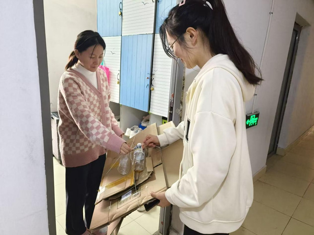 活動期間,青春夢旅環保社在校園內設置展牌,介紹活動內容并呼吁來往同學在橫幅上簽名留念;同時,社團還開展了收集廢棄紙盒等可回收物品兌換綠植的活動,同學們積極參與并填寫報名表。工作人員按照表格信息,進入學生宿舍收集廢舊紙盒等可回收物,共計約110個宿舍參與其中,活動取得了良好的反響。