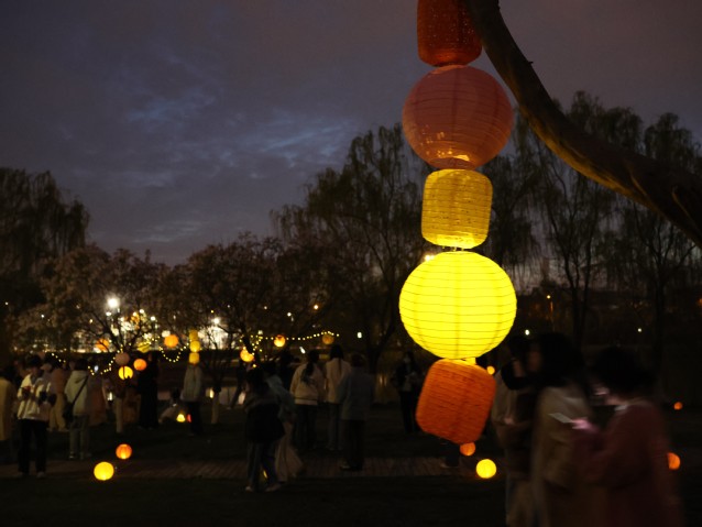 傍晚五點,漢服巡游開始。學生們身著各式漢服,手持兔子燈、絳紗燈,展示著“服章之美”。衣袂翩翩,宛若驚鴻,“越羅衫袂迎春風,玉刻麒麟腰帶紅”。舉目之下滿是溫柔優(yōu)雅的中國韻味,巡游隊伍像一幅唯美的古典畫卷。巡游途徑35棟教學樓、圖書館、二期北小門、二期天橋、一期天橋、一期大門,最后到達表演場地藝術(shù)樓,在此進行了十二花神走秀和舞蹈表演。十二花神是中國花朝節(jié)的代表,正值春色滿園,花神表演再合適不過。伴隨著優(yōu)美的旋律,精彩的漢服展演活動拉開了序幕,十二花神衣袂飄飄,華裳倩影,古韻盎然。緊接著是放河燈活動,五顏六色的蓮花河燈放入湖面,燈光水影,交相輝映,如繁星點點,構(gòu)成了一道美妙的校園夜景。社團攤位處還特別設置了書法、繪畫、投壺、賞燈等活動,多元國風演繹環(huán)節(jié)也為同學們帶來了別致體驗。盛開的丁香與風雅端莊的漢服交相輝映,繪出了一幅校園三月春景圖。