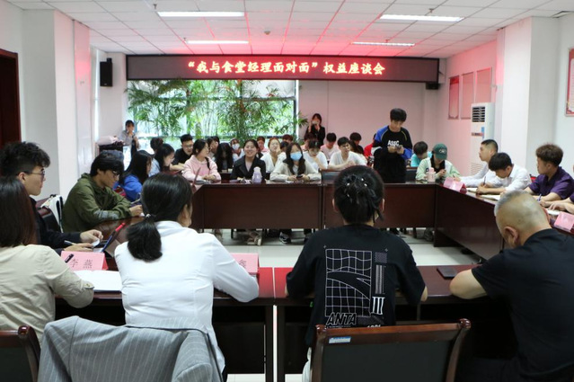 為貫徹全心全意為同學(xué)服務(wù)的宗旨,在食堂與學(xué)生之間形成雙向交流與互動(dòng)反饋機(jī)制,5月17日中午,校團(tuán)委和后勤集團(tuán)聯(lián)合召開(kāi)了“我與食堂經(jīng)理面對(duì)面”權(quán)益座談會(huì),這是我校“我為同學(xué)辦實(shí)事”系列活動(dòng)之一。相關(guān)部門(mén)人員、食堂經(jīng)理、校學(xué)生會(huì)工作人員和各學(xué)院學(xué)生代表參加會(huì)議。