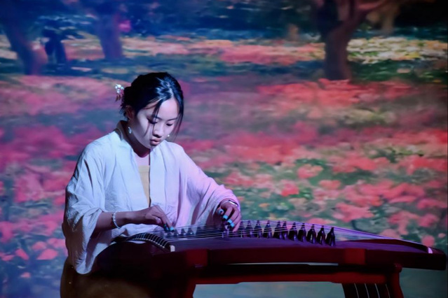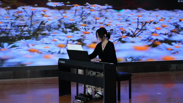 決賽現場,不論是中國古典樂器古箏、二胡、葫蘆絲、竹笛,還是西方特色樂器鋼琴、小提琴、架子鼓等,都給現場觀眾帶來了一場美妙的聽覺盛宴。竹笛表演曲目《浮光》,悠揚綿長的笛聲就好似拂過耳畔的清風,沁人心脾;古箏表演讓人好似置身竹林神隱自在,又好似置身江畔獨步尋花;架子鼓表演《山海》令現場氣氛達到沸點,現場掌聲熱烈。比賽期間,大學生藝術團舞蹈隊為我們帶來了十分養眼的舞蹈演出,聲樂隊帶來的歌曲《奇妙能力歌》與《克卜勒》,輕快動聽。