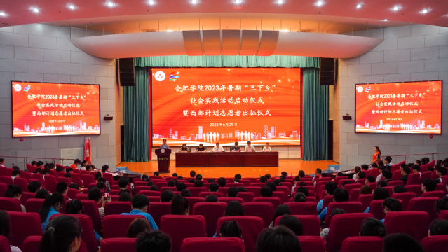 6月29日下午,我校2023年大學生暑期“三下鄉”社會實踐活動啟動儀式暨西部計劃志愿者出征儀式在圖書館報告廳隆重舉行。校辦公室、宣傳部、教務處、學生處、馬克思主義學院、團委部門負責人,各學院黨委副書記、團委書記、各團隊帶隊老師、馬克思主義學院指導老師、學生志愿者代表參與儀式。儀式由校團委副書記李妍妍主持,校黨委副書記劉建中出席儀式并發表講話。