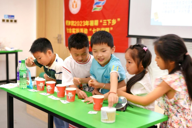 小實(shí)驗(yàn),大啟迪。讓小朋友們自主參與科學(xué)實(shí)驗(yàn),探究實(shí)驗(yàn)原理,在動手的過程中體驗(yàn)科學(xué)的奧秘與樂趣,營造崇尚科學(xué)、推動創(chuàng)新的良好氛圍。志愿者老師圍繞科普主題,帶領(lǐng)小朋友們進(jìn)行pH值測試并介紹pH值的意義以及應(yīng)用。“大家知道光是怎么傳播的嗎?”借助視頻教學(xué),小朋友們與志愿者老師共同合作,用簡易的紙杯與保鮮膜來制作紙杯投影儀,一個個生動可愛的圖像在光的照射下展現(xiàn)出來,小朋友們樂在其中,教室一片歡聲笑語。