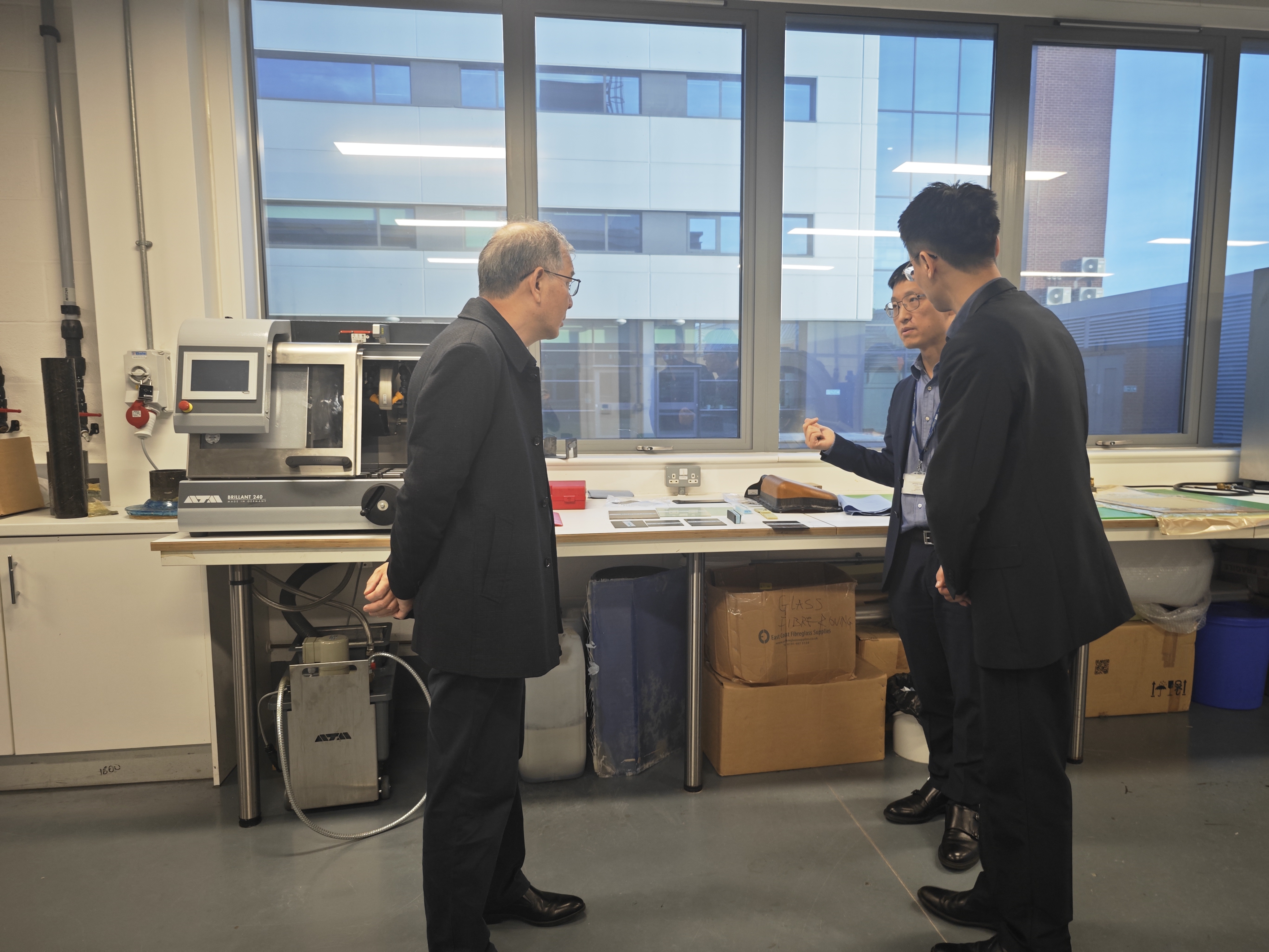 在德比大學期間,王其東一行訪問了德比大學工程學院,考察復合材料研究中心、抗震阻尼系統(tǒng)實驗室、復合材料制備工程實驗室、電子抗沖擊實驗室、性能綜合測試實驗室與工業(yè)設(shè)計實驗室,與工程學院院長彼得·凱伯德(Peter Kyberd)教授進行會談,洽談在增材制造及汽車高性能材料等領(lǐng)域的合作。