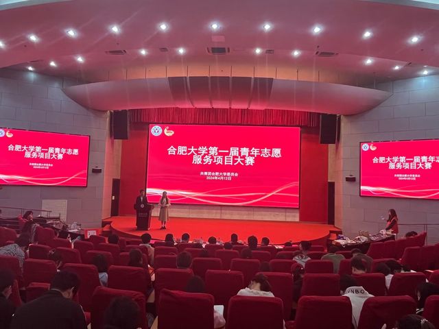4月12日上午,合肥大學(xué)第一屆青年志愿服務(wù)項(xiàng)目大賽于圖書(shū)館報(bào)告廳A廳順利舉辦。活動(dòng)特邀合肥工業(yè)大學(xué)馬克思主義學(xué)院周軍博士、安徽大學(xué)社會(huì)與政治學(xué)院徐剛老師、安徽省青年志愿者協(xié)會(huì)志愿匯安徽區(qū)域負(fù)責(zé)人盛鵬擔(dān)任評(píng)委,海恒社區(qū)團(tuán)委書(shū)記謝燕燕出席。