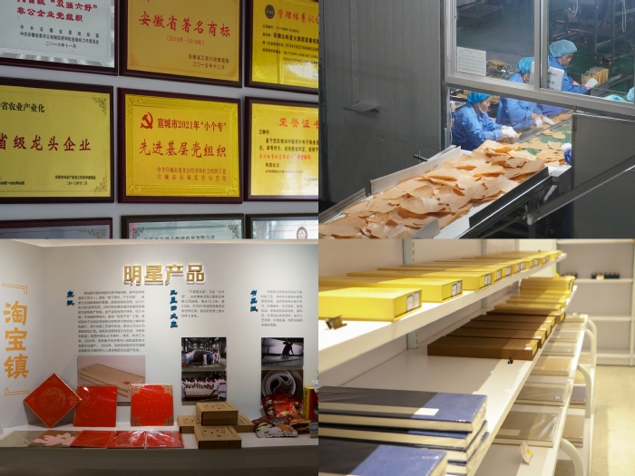 團隊成員們走訪了云嶺鍋巴、李園村、宣紙產業園等地,它們以獨特的方式,走出了一條條“致富路”。云嶺鍋巴改良加工方式,為滿足多樣化的市場需求而制作多種口味的鍋巴。李園村把握時代機遇,利用互聯網將宣紙等產品銷往全國各地。在宣紙產業園內,團隊成員們近距離觀看了宣紙、宣筆、徽墨等制作過程。“傳統產業與現代科技相融合”已經成為當地企業的創業秘訣。