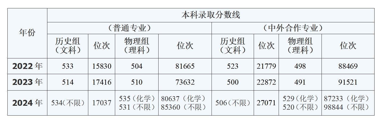 合肥大學近三年普通高等教育本科錄取分數線(安徽省本科批次)(2022-2024年)
