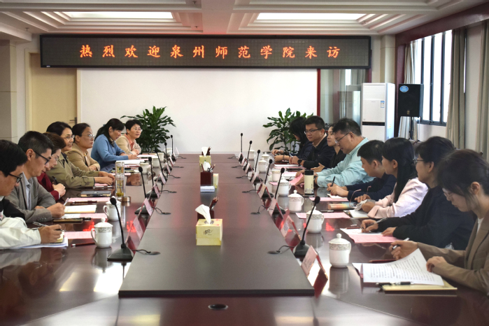 10月31日,泉州師范學院黨委委員、副校長夏侯建兵來校調研交流,我校在行政樓會議室召開座談會,副校長陳秀出席并主持會議,相關職能部門負責人參加會議。