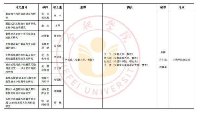 合肥學院2020屆碩士研究生畢業(yè)論文答辯公告