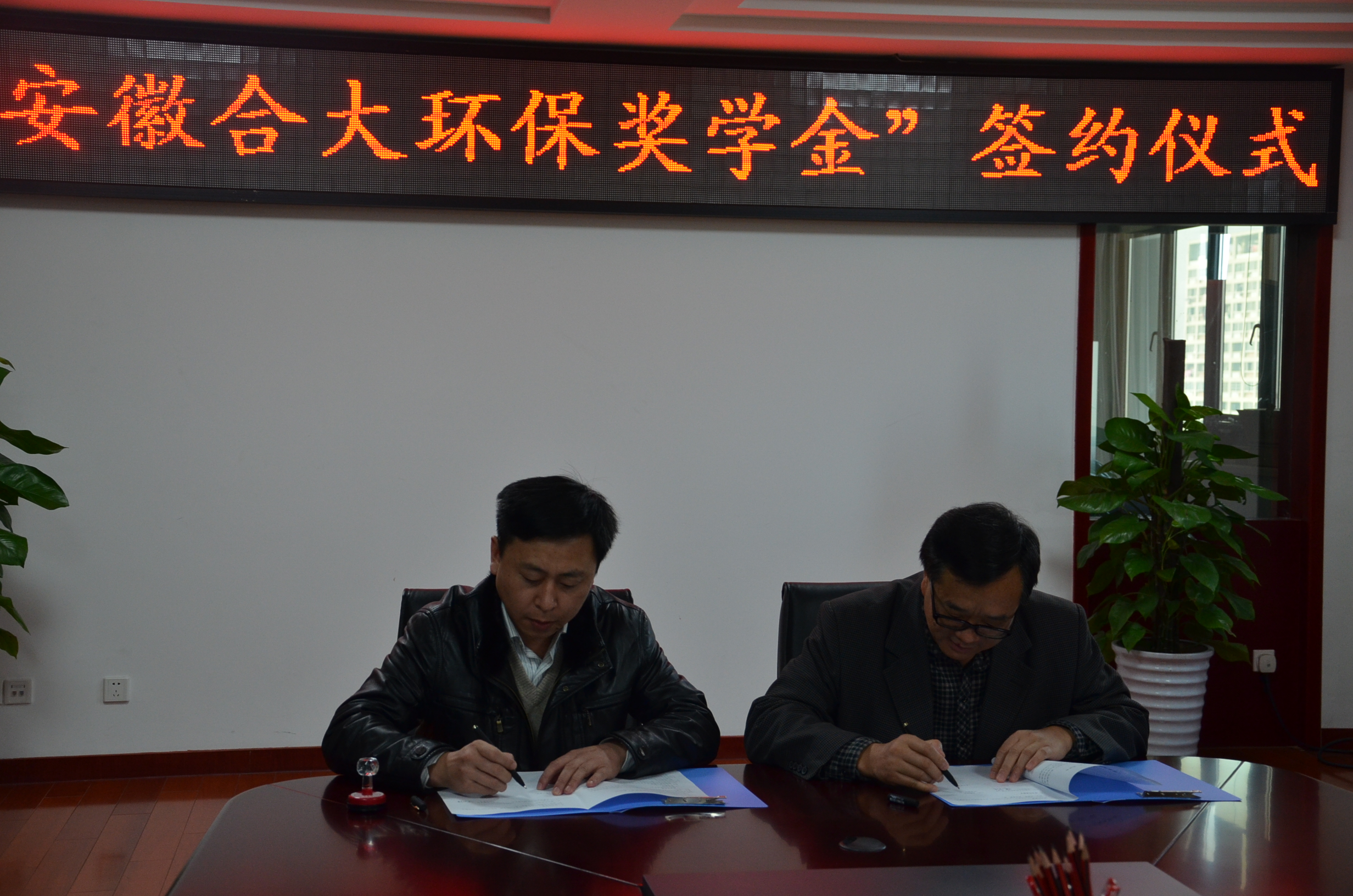 丁明副院長代表學校與安徽合大環境檢測有限公司總經理韓蔚簽約