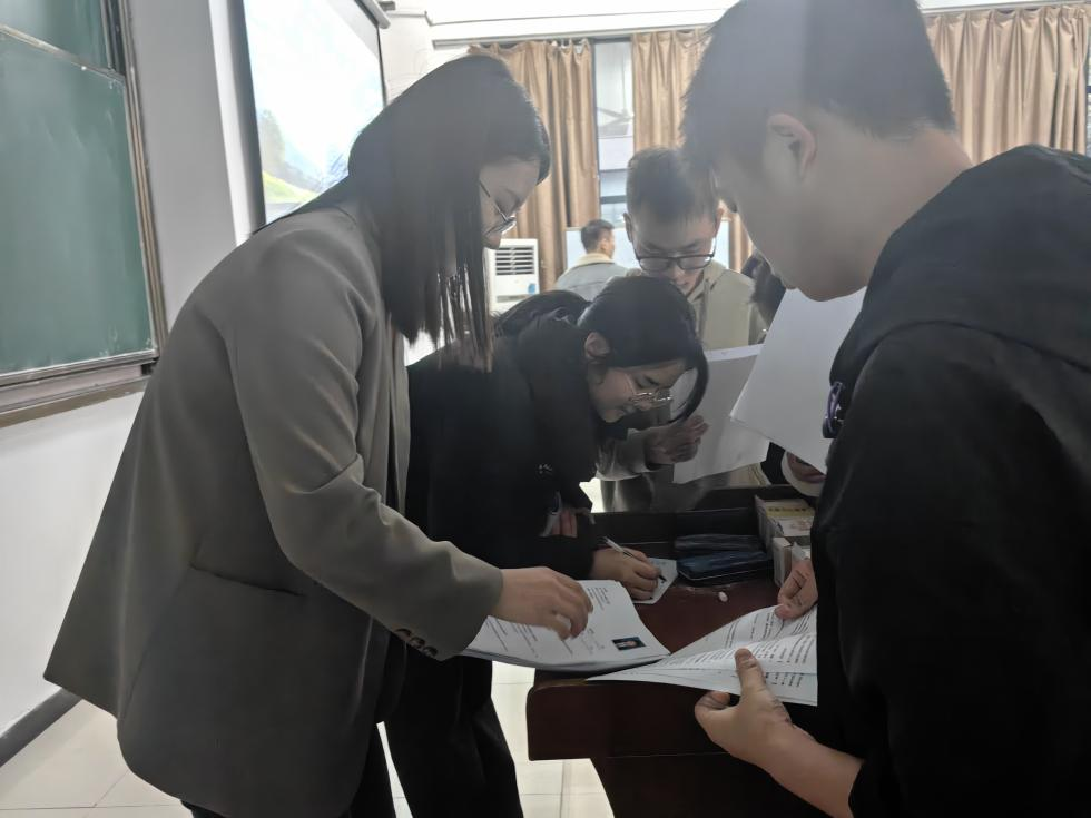 招聘宣講會結束后,在場研究生踴躍遞交了簡歷并與招聘經理進行了交流。(撰稿:學生記者郭俊杰,審核:劉鵬飛)