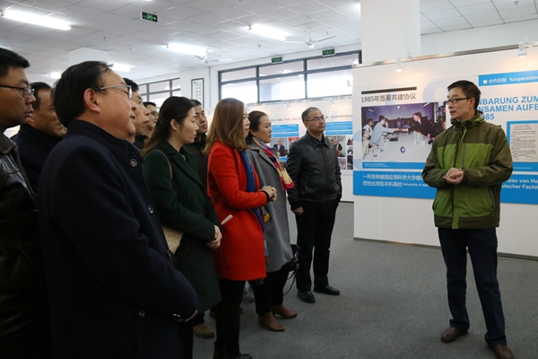 2日上午,與會(huì)代表來訪我校,并參觀了我校中德合作共建三十周年圖片展。我校黨委委員、宣傳部部長劉樟樹熱情接待了來賓,研究生處伍德勤處長介紹了我校專業(yè)碩士培養(yǎng)情況。在參觀中德合作圖片展過程中,劉樟樹詳細(xì)講解了我校與德國應(yīng)用科學(xué)大學(xué)合作發(fā)展的歷史、成果以及我?!暗胤叫浴?yīng)用型、國際化”的辦學(xué)定位,并介紹了德國總理默克爾與國務(wù)院總理李克強(qiáng)共同視察我校的情況。與會(huì)代表對(duì)我??焖侔l(fā)展的歷史和中德合作的累累碩果表示了由衷的贊嘆,對(duì)我校專業(yè)碩士培養(yǎng)的特色給予了充分的肯定。之后,代表們前往廬江縣考察安徽農(nóng)業(yè)大學(xué)皖中農(nóng)業(yè)綜合實(shí)踐基地。