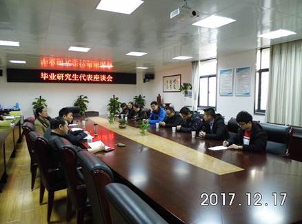 20171217日下午,生物與環境工程系在三樓會議室召開碩士研究生畢業生代表座談會,就我校研究生培養及校企合作方面聽取畢業生的意見和建議。生物系主任俞志敏教授,黨總支書記肖厚榮教授,研究生處司靖宇副處長、研究生教學秘書張金流老師及我校2012級、2013級、2014級畢業研究生代表參加座談會。